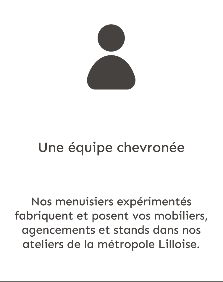 Nos menuisiers expérimentés fabriquent et posent vos mobiliers, agencements et stands dans nos ateliers de la métropole lilloise.